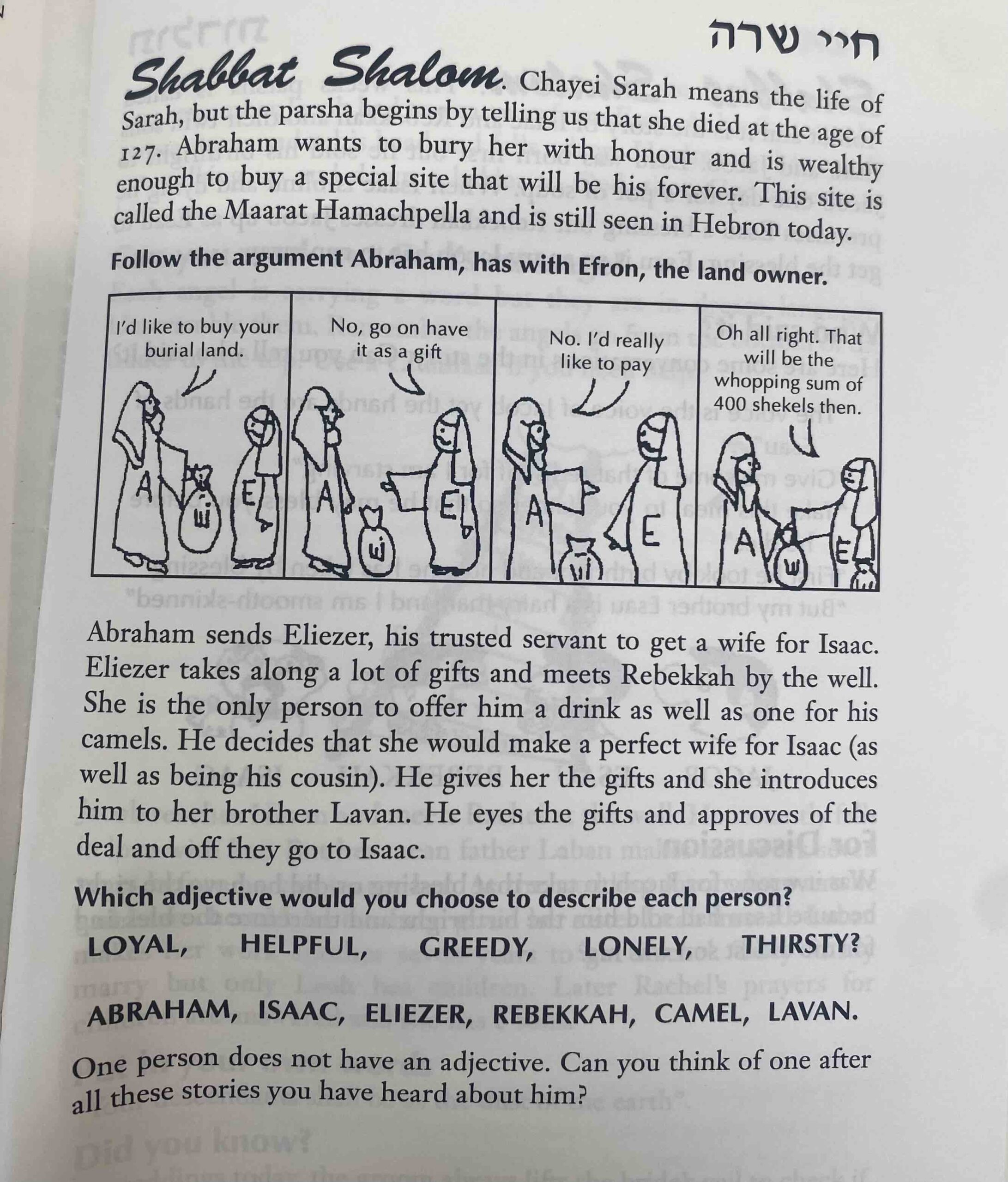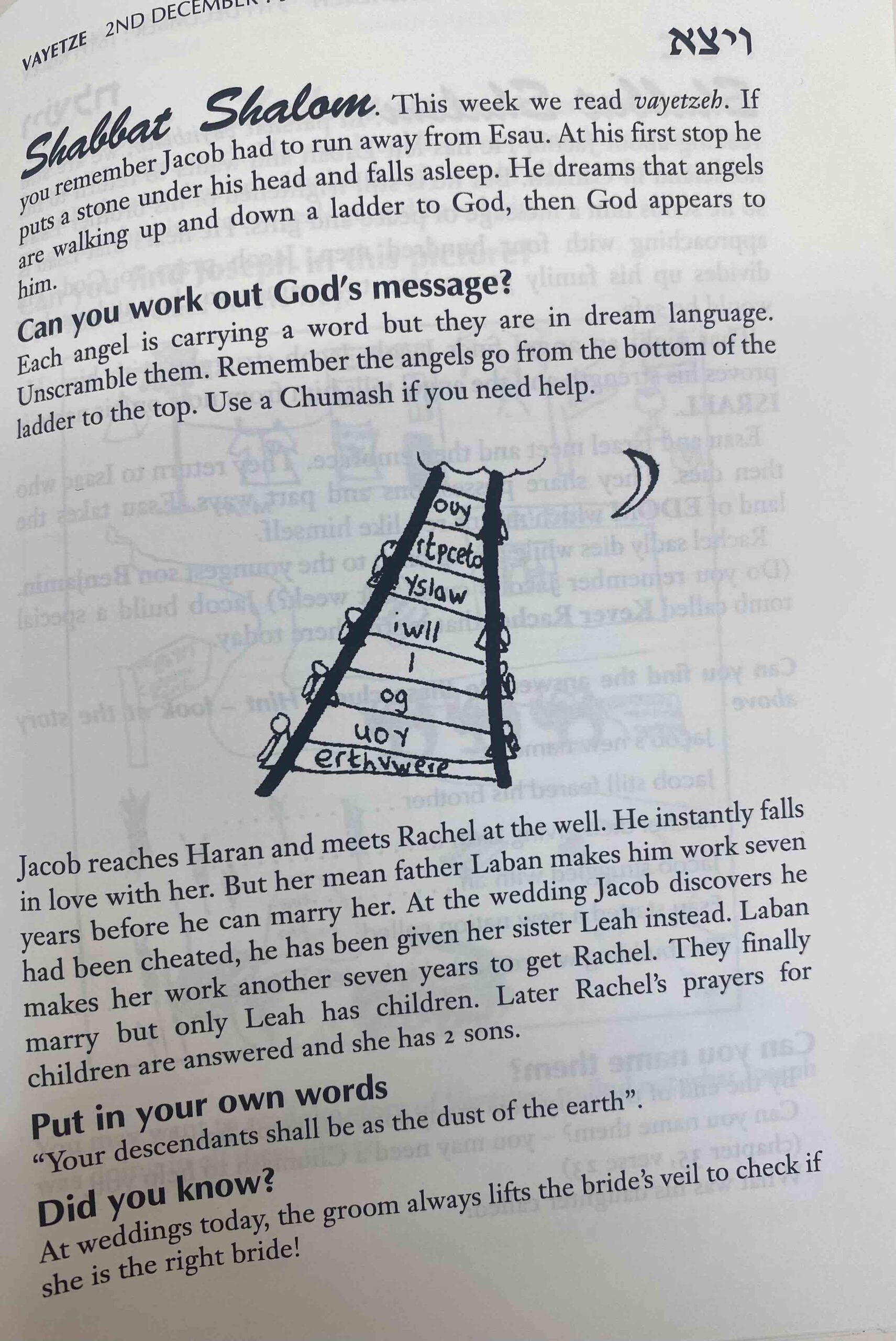 “Each week I will bring you interesting ideas, stories, riddles and quizzes for you to read — and to share on Shabbat morning or at your children’s service.”