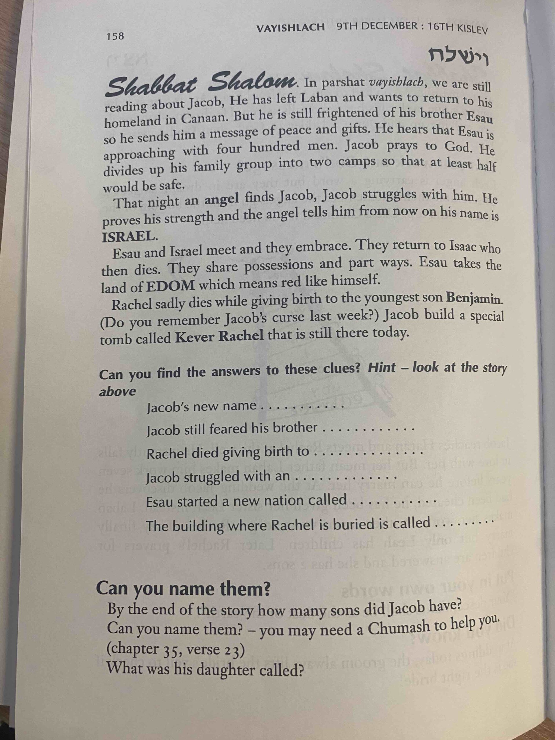 In 1995, Judy Weiner created a full year’s worth of Parashat HaShavua materials for children aged 7–12. These thoughtful and imaginative pieces were later published in 1997 in a Masorti collection called Reflections of the Year: Insights into the Weekly Parasha.
